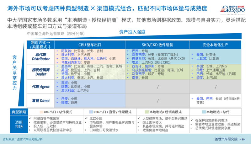 在出海模式上,中国车企展现出高度灵活性,针对不同市场采取整车出口(CBU)、散件组装(CKD/SKD)和本地建厂等多路径策略。这种“因地制宜”的打法极大增强了中国汽车全球拓展的抗风险能力。